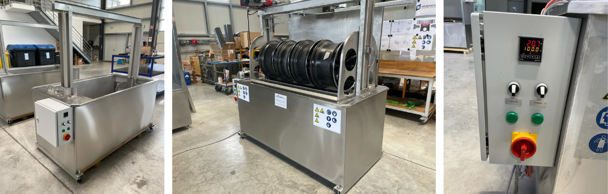 Unsere Entlackungsanlagen sind individuelle Sonderanfertigungen, ausgestattet mit Heizstäben, die sich über eine Temperatursteuerung präzise regeln lassen. Die Arbeitsflächen bieten wir in verschiedenen Größen an, wobei unser System durch eine Wanne-in-Wanne-Konstruktion keine Auffangwanne benötigt.