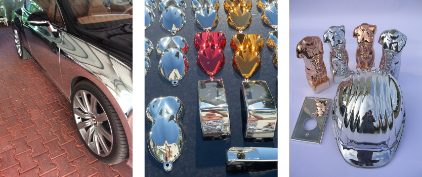 Die CLC-Technik bietet eine kostengünstige und technisch ausgereifte Möglichkeit, glatte und lackierbare Oberflächen in Chromlook bzw. Chromoptik darzustellen. Mit unserer Verspiegelungstechnik verleihen wir Kunststoffprodukten den metallischen Glanz einer echten Metalloberfläche. Dabei sind nahezu alle Farben möglich, von Rot-Chrom bis hin zu Gold-Chrom Tönen.